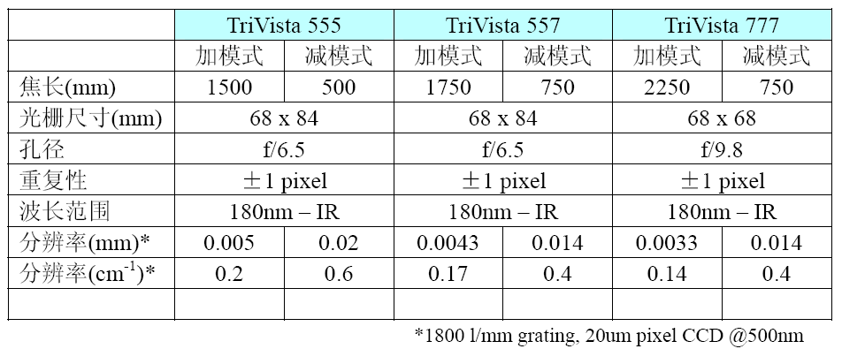 - TriVista 系列三级拉曼光谱系统,利用前两级高性能光谱仪滤除锐利线散射光,低波数测量可到5cm-1 以下。